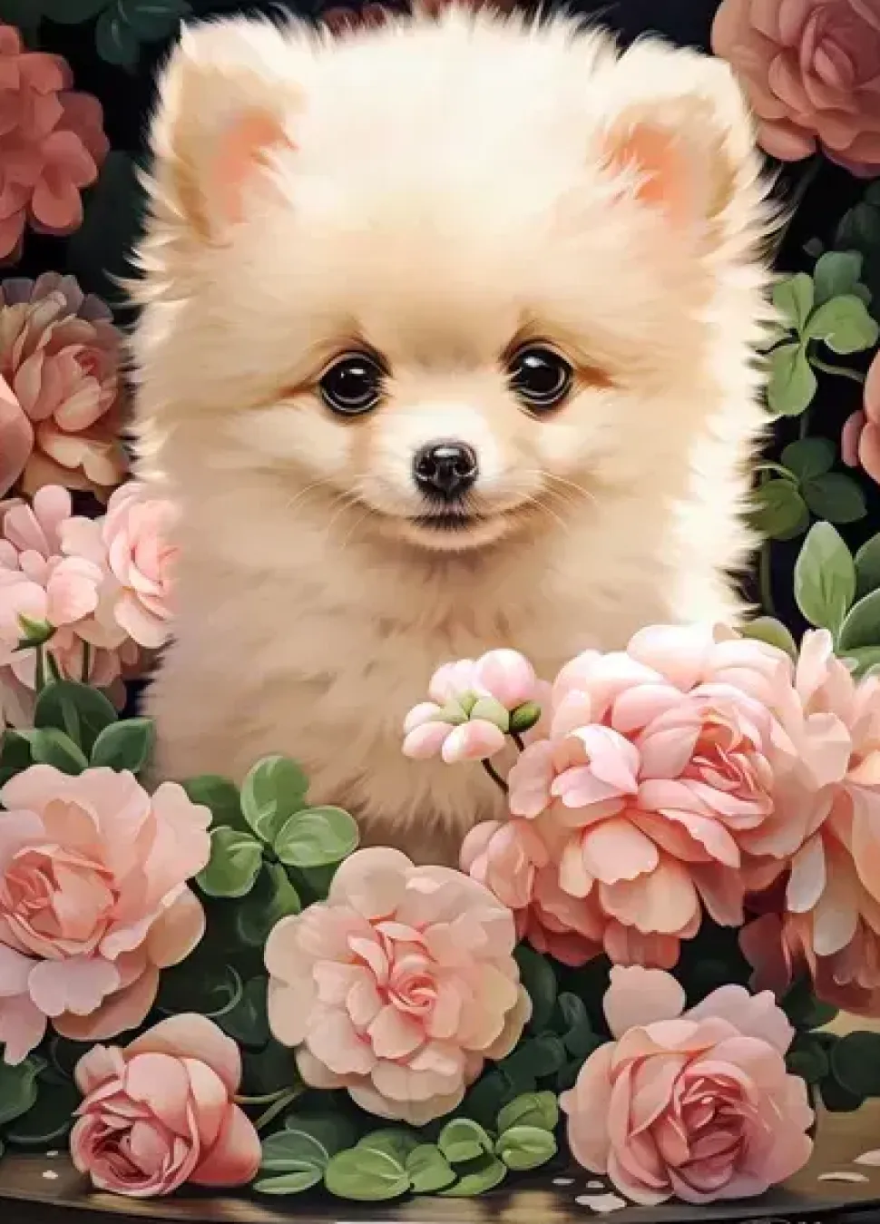 Puzzle Cachorro Pomerânia em Rosas