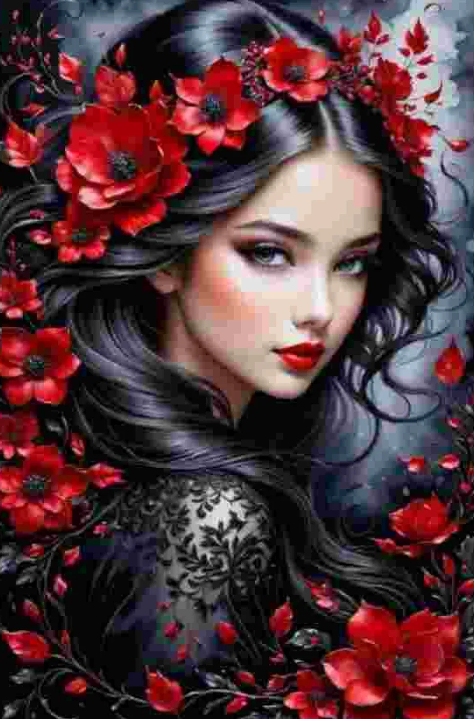 Puzzle Pintura Diamant: Morena com flores vermelhas 30x40cm
