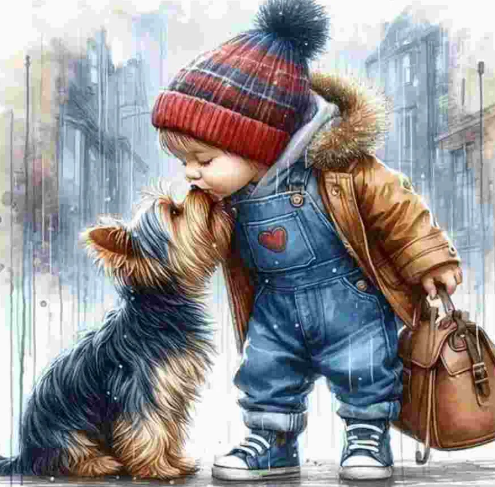 Puzzle Pintura Diamant: Rapaz com um cão 30x40cm