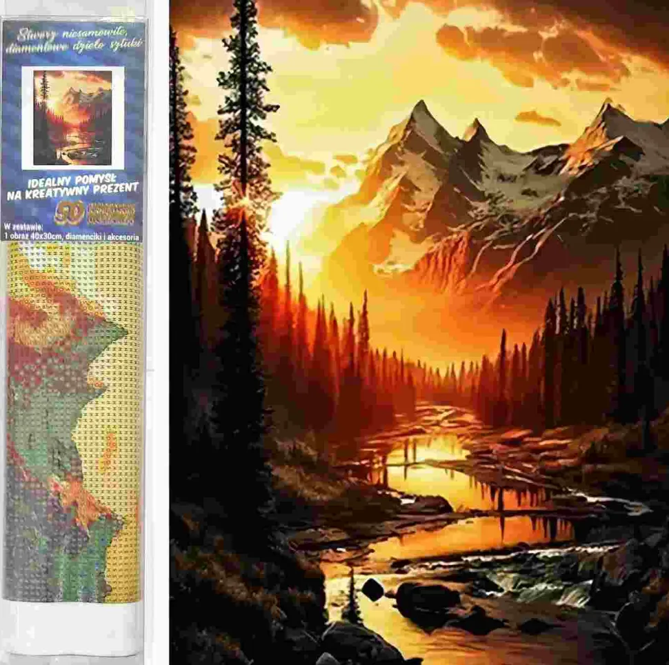 Puzzle Pintura Diamant: Rio de montanha ao pôr do sol 30×40 cm