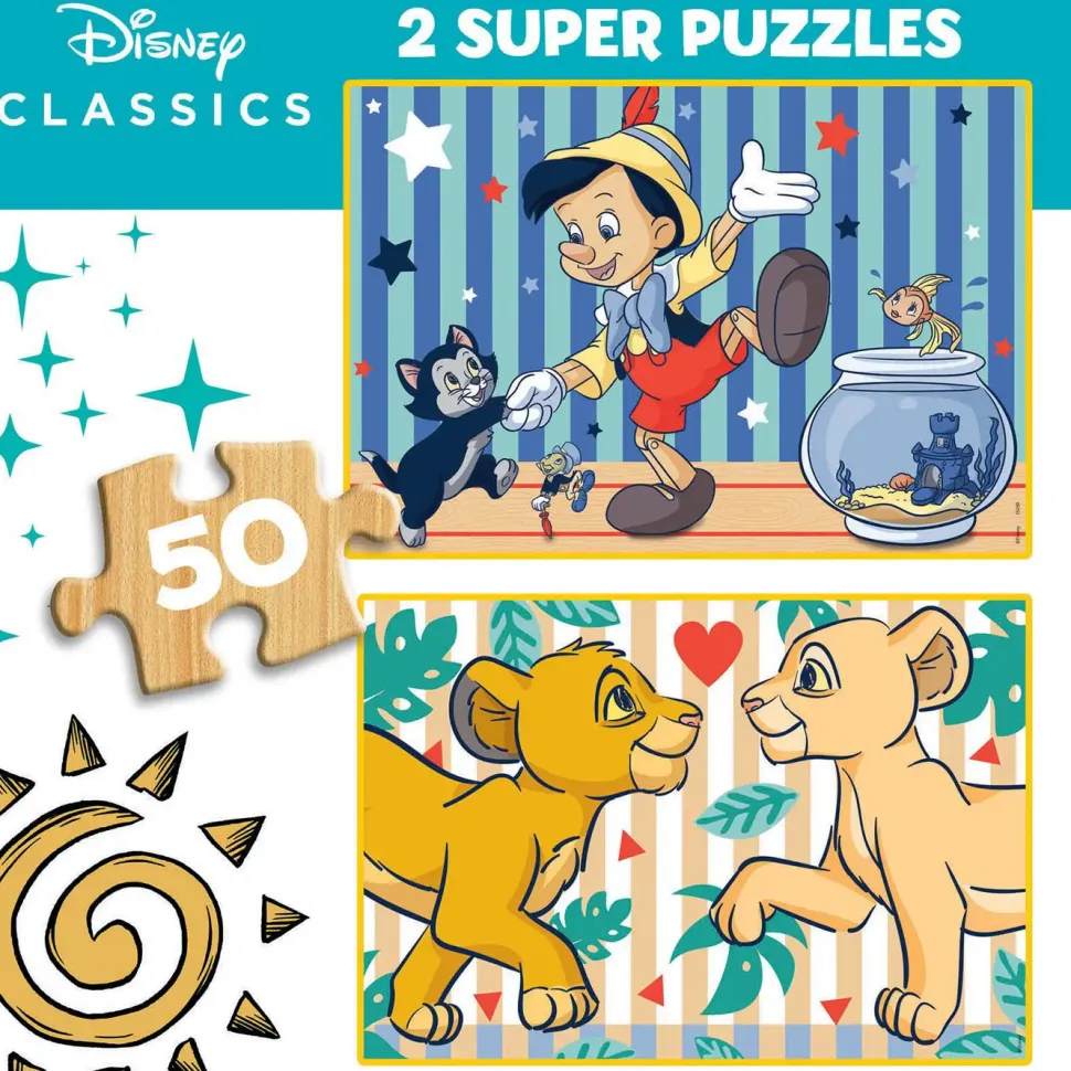 Puzzle 2×50 Clássicos Disney: Leví krá木, Pinokio