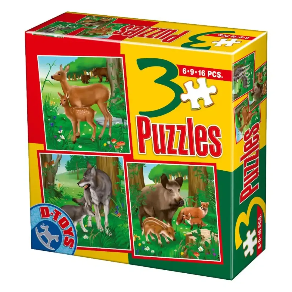 Puzzle 3v1 Animais selvagens