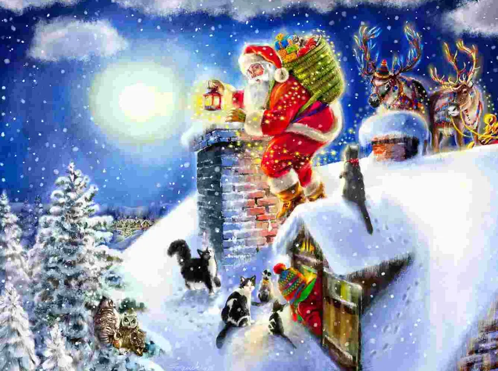 Puzzle Papai Noel no Telhado