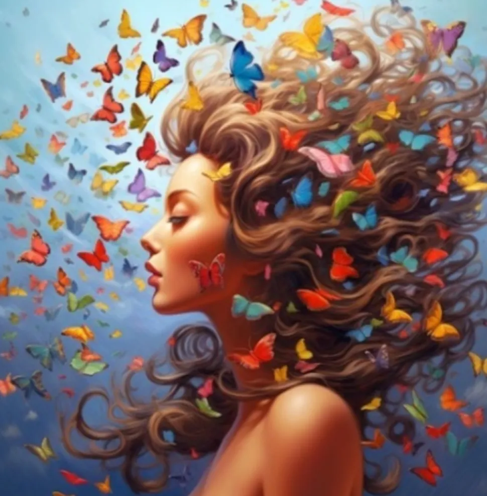 Puzzle Pintura Diamant: Mulher borboleta 30x40cm