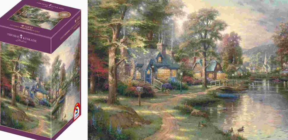 Puzzle Thomas Kinkade: Lago da cidade natal de madeira